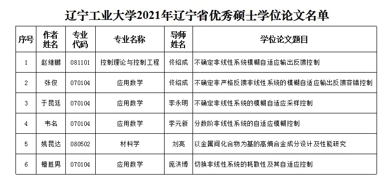 6月2日,辽宁省教育厅、辽宁省人民政府学位委员会下发了《关于公布2021年辽宁省优秀博士、硕士学位论文评选结果的通知》(辽教通〔2022〕86号)。米乐官网6篇论文获评辽宁省优秀硕士学位论文,再创历史新高,位于省属同类高校前列。其中,庞洪博副教授指导的1篇论文以抽检“优秀”直接入选(全省抽检论文中仅有31篇被评为“优秀”)。