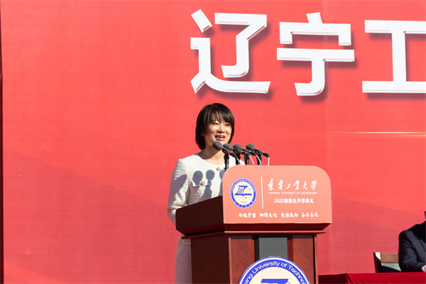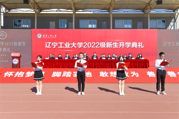 伴随着激昂嘹亮的校歌,校领导为新生代表佩戴校徽。校徽是“辽工大人”的闪亮标识,它承载着辽工大人的使命与担当,它时刻提醒着新同学们要增强爱校、护校、荣校、强校意识,为学校的创新发展贡献自己的青春力量。