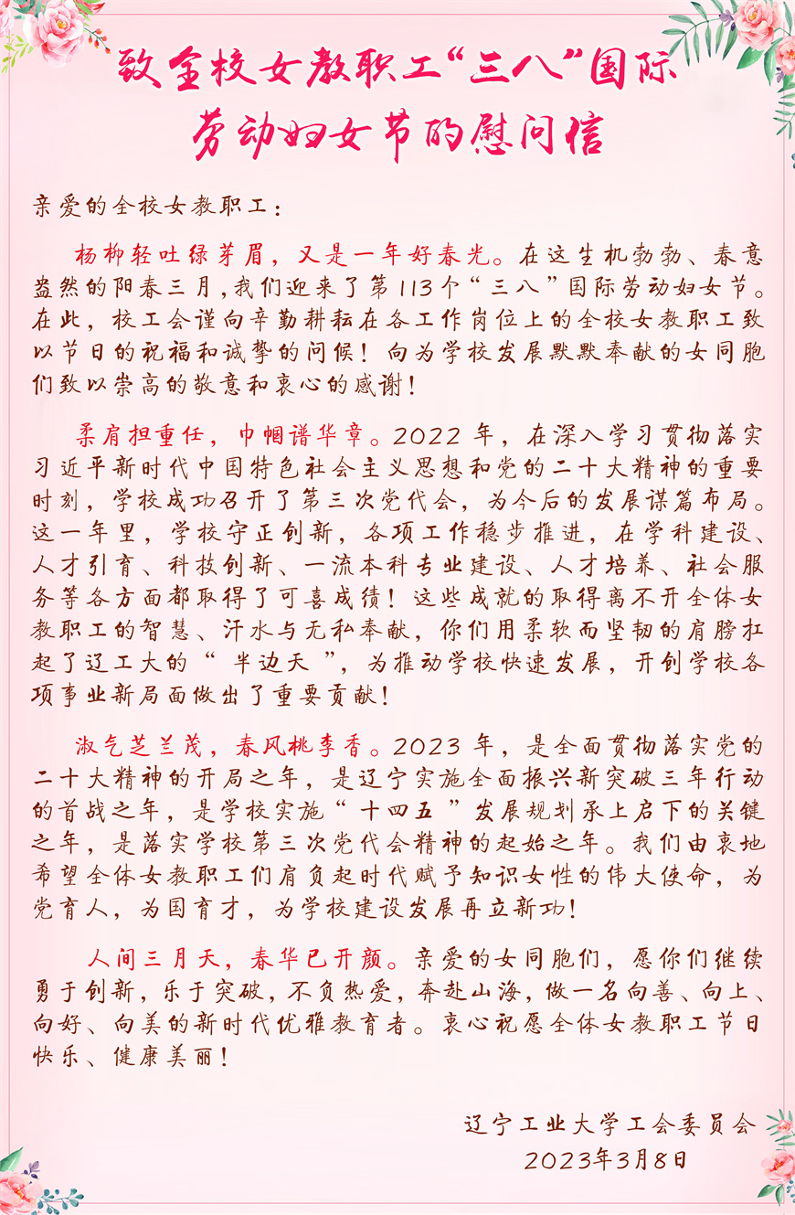 致全校女教职工“三八”国际劳动妇女节的慰问信