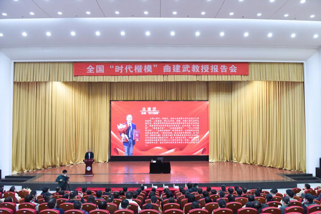 曲建武教授以“着力培养担当民族复兴大任的时代新人”为题,从不忘初心办好人民满意的教育、脚踏实地为学生传道授业解惑、铸魂育人培养担当民族复兴大任的时代新人三个方面解读了“培养什么人、怎样培养人、为谁培养人”的根本问题,并结合自身40年丰富的从教经历,通过分享情感真挚的万里家访故事、感人至深的学生帮扶案例、鲜活生动的青春成长信函,向大家讲述了如何做一名爱生如子的辅导员,如何做一名行为世范的高校教师,如何培养担当民族复兴大任的时代新人;诠释了以德立身、以德立人、以德立教的育人使命,展现了一名高校辅导员对党、对国家、对人民的无限忠诚与热爱。整场报告会理论有高度、思维有深度、视野有广度、教育有温度,让全场师生肃然起敬、受益匪浅。