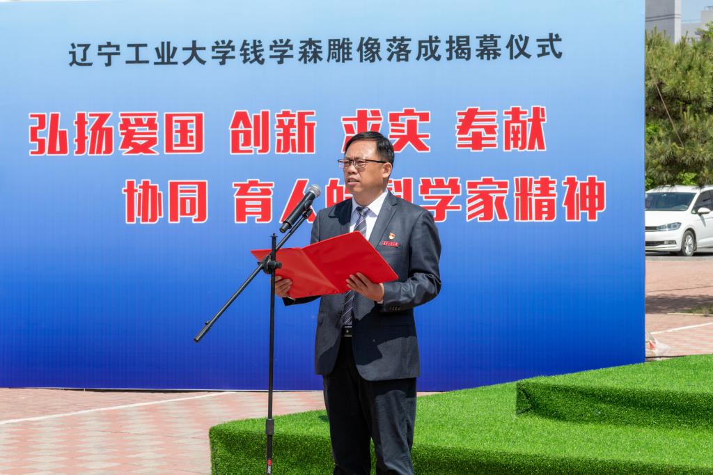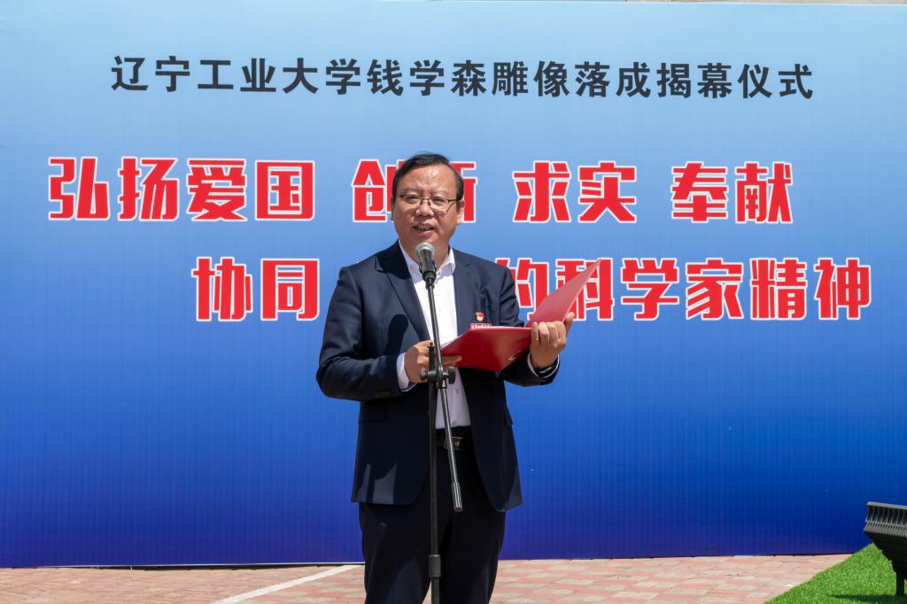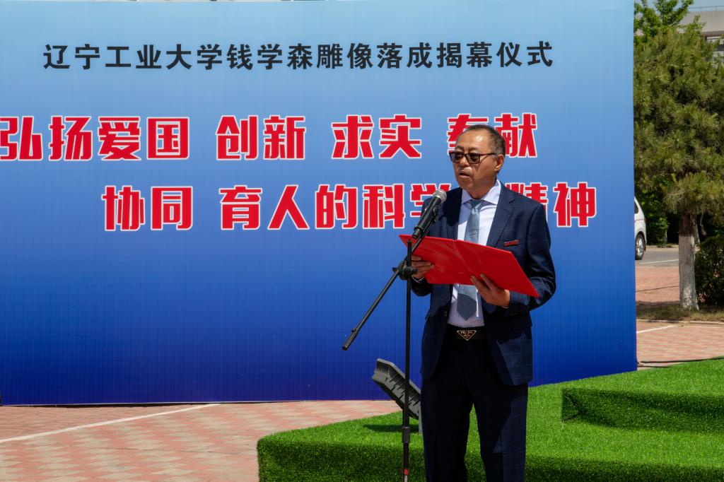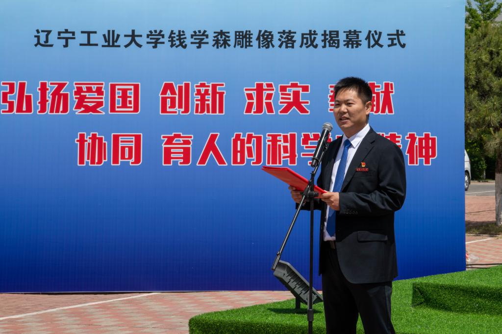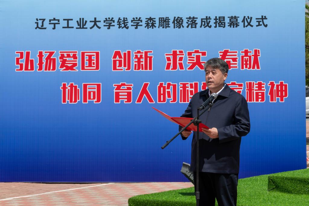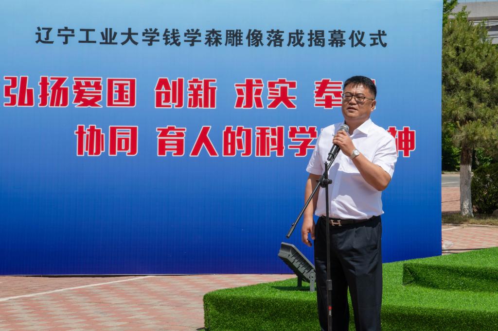 党委副书记、校长王琦在致辞中指出,今年是钱学森先生诞辰112周年,钱学森先生的一生,立志、求学、归国、奉献,为广大的科技工作者、教育工作者、莘莘学子树立了光辉的典范!这也与学校的建校初心、办学定位、培养目标、校训精神高度契合,值得我们终身学习、终身践行。雕像所处的位置正是辽沈战役配水池战斗遗址——82.61高地附近。我们在这里树立钱学森雕像,就是要传承锦州这座英雄城市的红色基因,弘扬辽沈战役配水池战斗的攻坚克难精神,继承和发扬钱学森先生等老一辈科学家胸怀祖国、服务人民的优秀品质和严谨的科学态度、缜密的创新思维、系统的工程观。大力弘扬“爱国、创新、求实、奉献、协同、育人”的科学家精神,以及牢记初心使命,永葆奋斗精神的强大力量,在锦州乃至辽宁树立科学高峰、工程与技术研究高地。他强调,全校师生要以钱学森先生为榜样,为师为学,将爱国之心、强国之愿,报国之志、效国之行融入中国式现代化建设新征程,融入服务辽宁全面振兴新突破三年行动之中,为建设特色鲜明的高水平应用型大学再建新功。