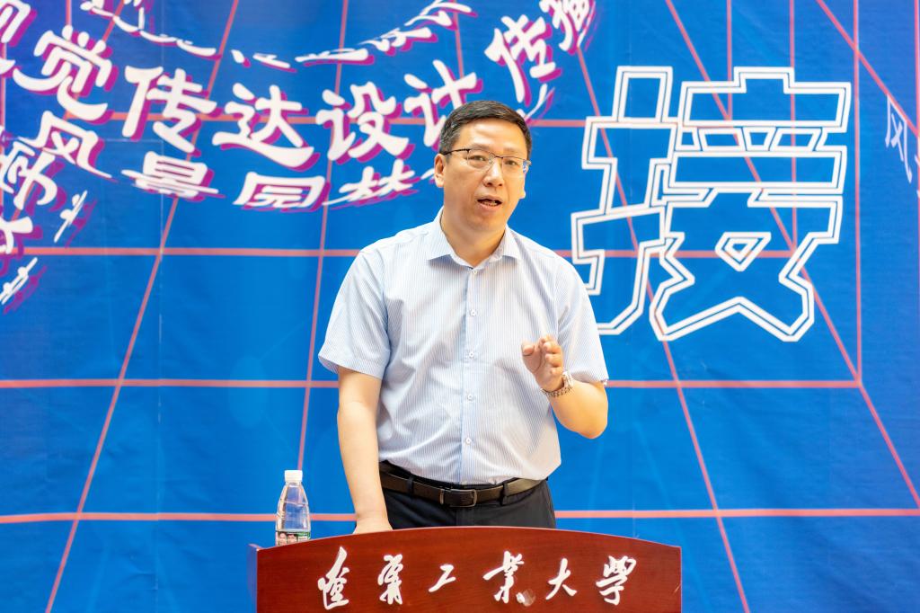 文化传媒与艺术设计学院院长杨天明结合展览主题“链接”,介绍了学院多年来注重价值引领,坚守传承创新,链接多元协同,践行“设计+”人才培养模式取得的成效。