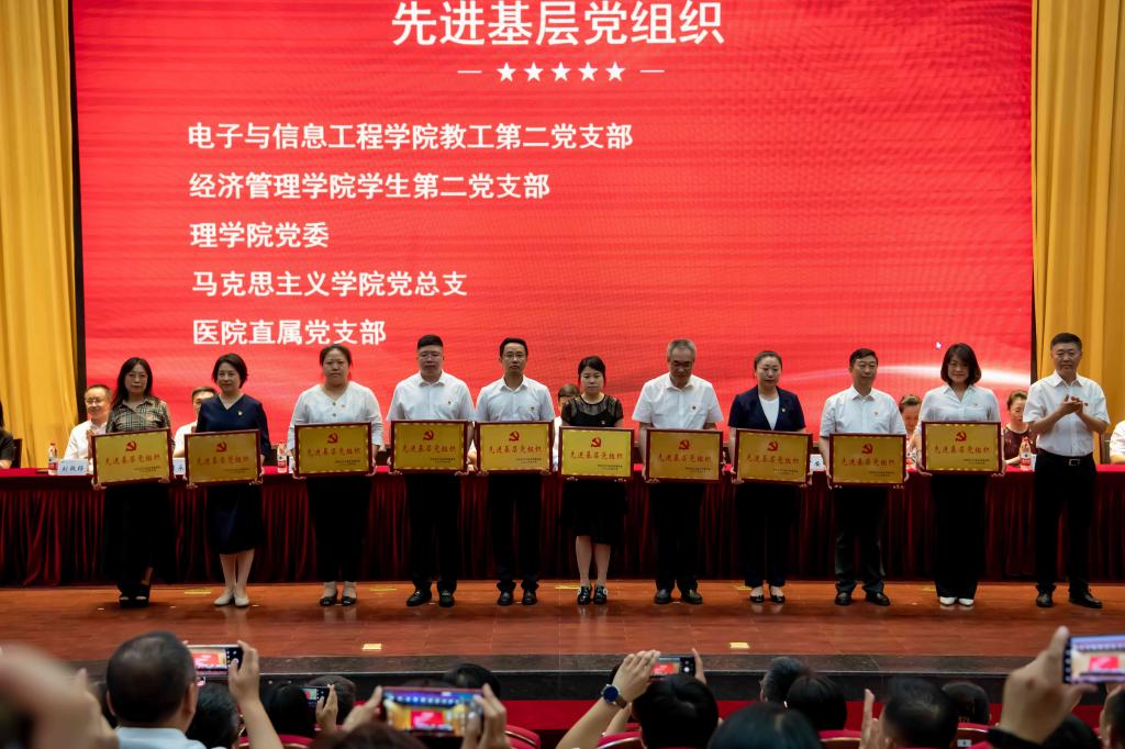大会表彰了近两年在教学、科研、管理、服务、疫情防控等各项工作中涌现出的优秀共产党员、优秀共产党员标兵、优秀党务工作者和先进基层党组织,为老党员颁发“光荣在党50年”纪念章。“优秀共产党员标兵”王巍代表受表彰人员发言,师生代表演绎微党课《弘扬伟大建党精神,走好新时代赶考路》,激励师生党员进一步弘扬伟大建党精神,赓续中国共产党人的精神谱系,在推动学校高质量发展大局中展现新担当新作为。