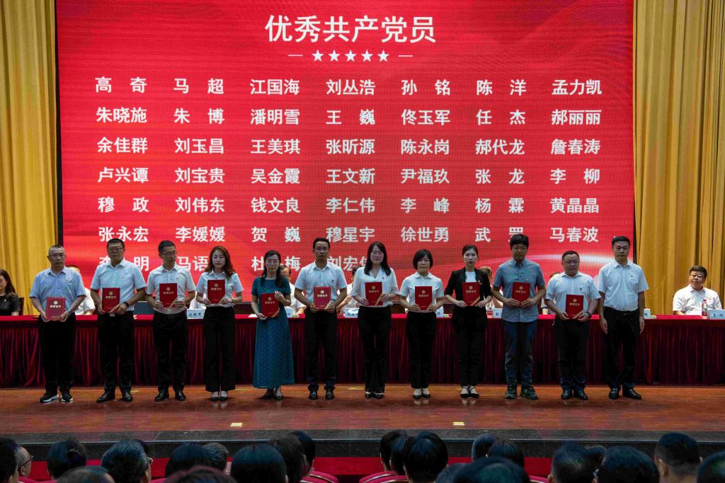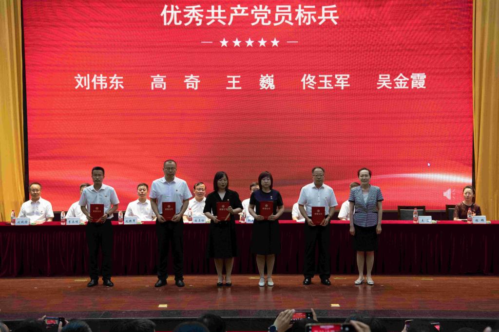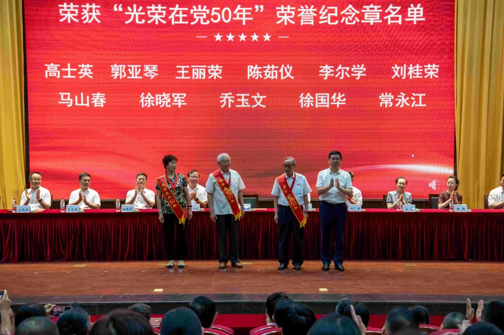 庆祝和表彰大会前,举行了新党员入党宣誓仪式,由“光荣在党50年”纪念章获得者马山春同志领誓。(刘欢 文/李刚 摄影)