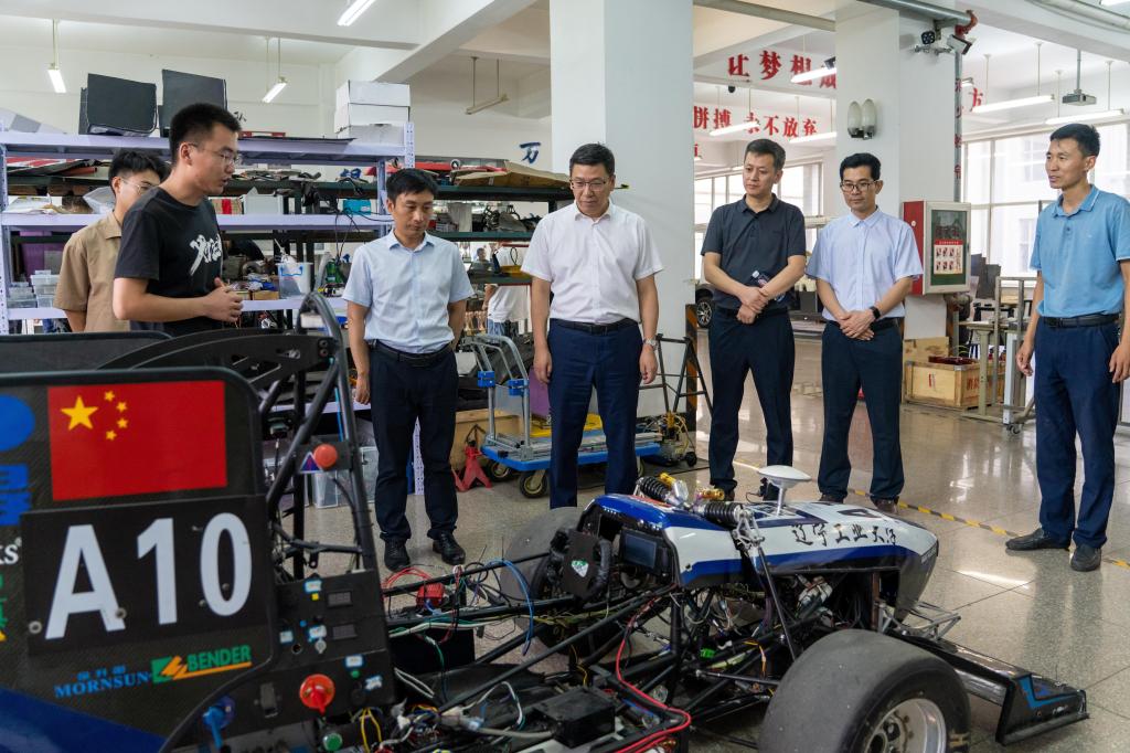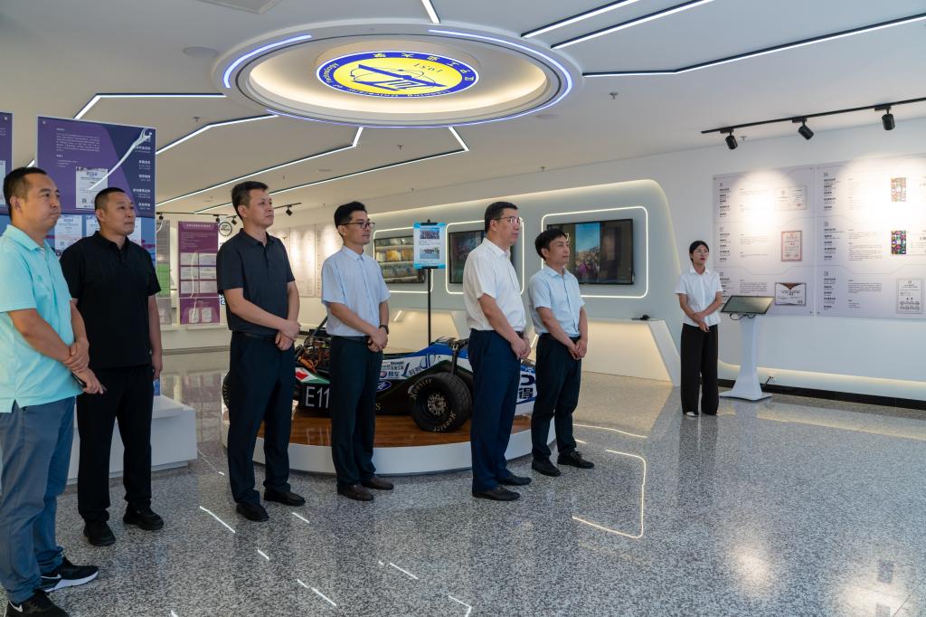 刘永涛一行先后参观考察了米乐mile官方网站校史馆,创新创业展厅、辽宁省新能源汽车底盘与驱动技术重点实验室和大学生万得车队科技创新实验室。(郑士鹏 文/李刚 摄影)