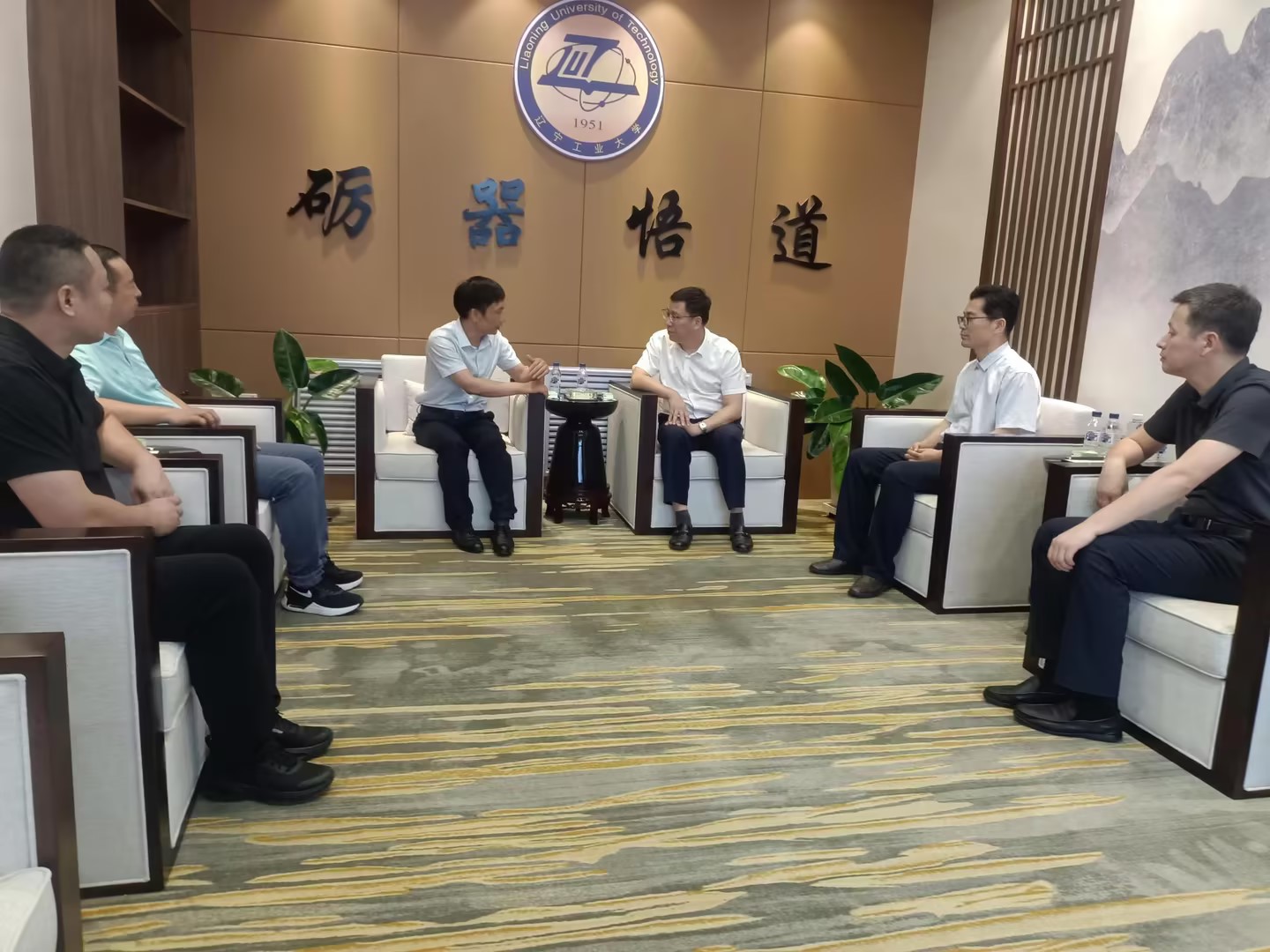 8月19日,河南工程学院党委书记刘永涛、党委办公室主任王俊飞、创新创业学院院长刘晓乐一行三人到米乐官网考察交流。米乐官网党委书记钱英伟,党政办公室、教育培训学院、国有资产经营公司负责人参加交流活动。
