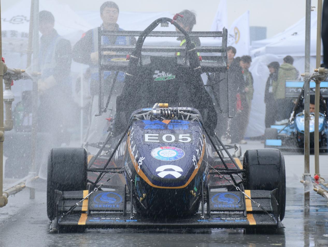 淋雨测试项目对于每个车队都是严峻考验,车检现场险象环生,米乐官网万得车队队员们临阵不乱、沉着应对,迅速发现问题、及时解决。淋雨测试雨量达到暴雨级别,队员们紧张地关注赛车的状态,万得电车不负众望,最终通过此项目测试。在高速避障比赛当中,天空飘起绵绵细雨,队员们临危不惧,加紧为赛车更换雨胎。天气的影响并没有影响比赛的进度。最后,在队员全力配合和车手稳定发挥下,电动赛车成功完成该项目测试。