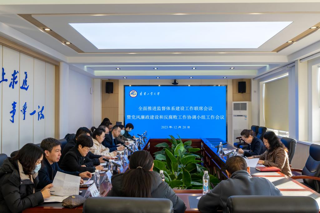 为贯彻落实习近平总书记关于监督体系建设重要讲话和重要指示批示精神,落实《中共米乐mile官方网站委员会监督体系建设暂行办法》相关工作要求,推进全面从严治党向纵深发展,12月20日,学校在第三教学楼8楼会议室召开全面推进监督体系建设工作联席会议暨党风廉政建设和反腐败工作协调小组工作会议。校纪委书记、监察专员王宏出席会议并讲话。学校全面推进监督体系建设工作成员单位负责人及党风廉政建设和反腐败工作协调小组成员参加会议。会议由校纪委副书记郭爽主持。