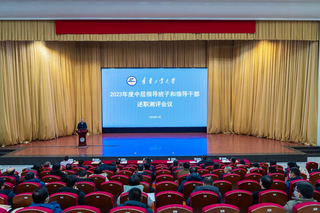 为全面掌握各单位各部门2023年度党政工作要点完成情况,考准考实领导班子和领导干部履职能力和工作成效,1月5日,学校在图书馆报告厅召开2023年度中层领导班子和领导干部述职测评会议。学校各单位各部门负责人进行现场述职,校领导班子成员和全体考核评价团成员参加会议。校党委书记钱英伟作现场点评,校党委副书记张启俭主持会议。