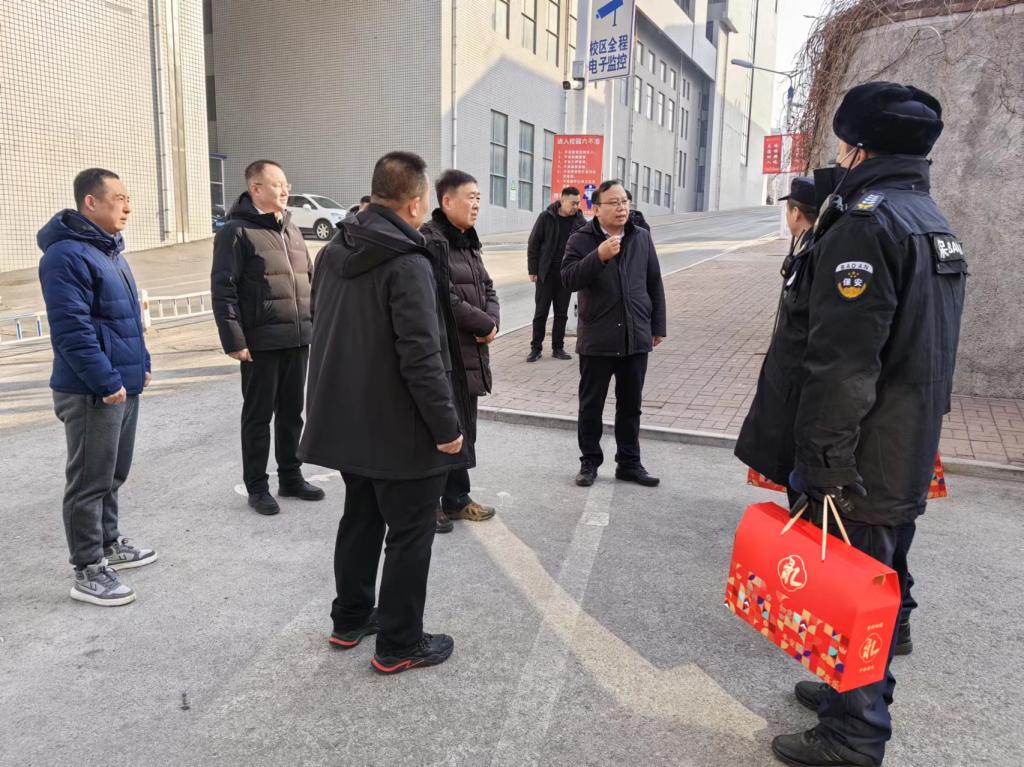 校领导先后走访了国际教育学院、变电所、西门门卫、南区供暖中心、水泵房,亲切看望了值班的教职工,热情地与他们握手交流,感谢他们为学校发展和服务育人作出的特别贡献,并送上新春礼包。