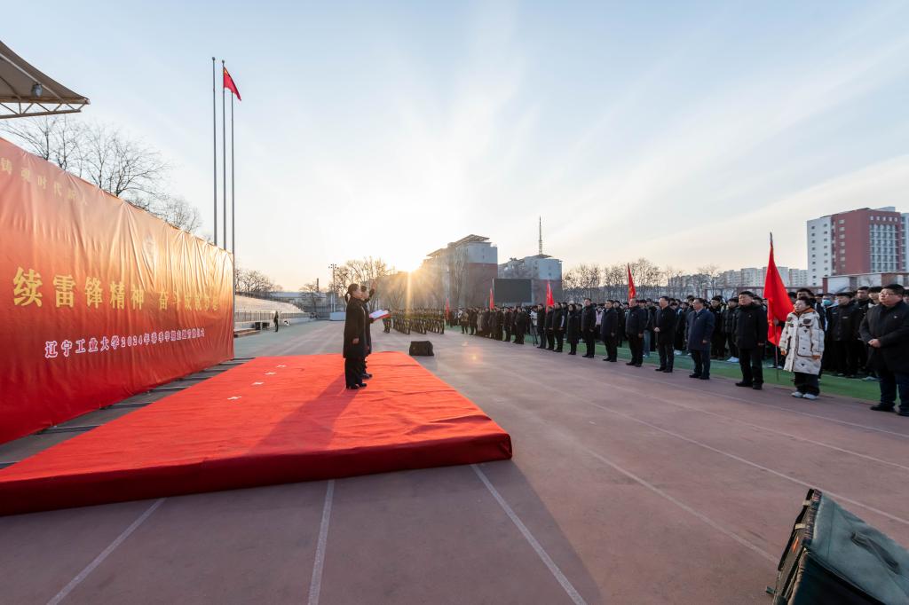 校党委书记钱英伟为米乐mile官方网站雷锋志愿服务队授旗,辽工大青年接过雷锋精神的“接力棒”,用青春续写新的时代华章。