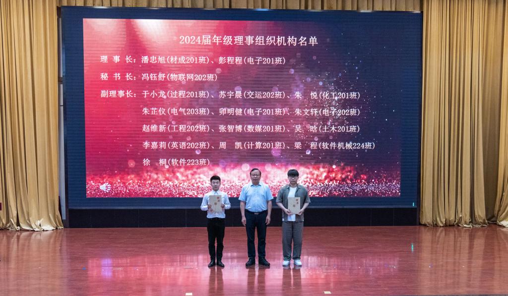 校友代表、2014届年级理事长宋国栋分享了毕业后的工作经历与经验,鼓励2024届年级理事做好校友工作,为母校服务。新当选的2024届年级理事长材成201班潘忠旭同学作代表发言,表示要认真履行职责,用奋斗和努力回馈母校,传承“敢于向前、攻坚克难”的配水池战斗革命精神,“砺器笃行、悟道致远”的校训精神和“向上求进、事争一流”的干事创业精神。