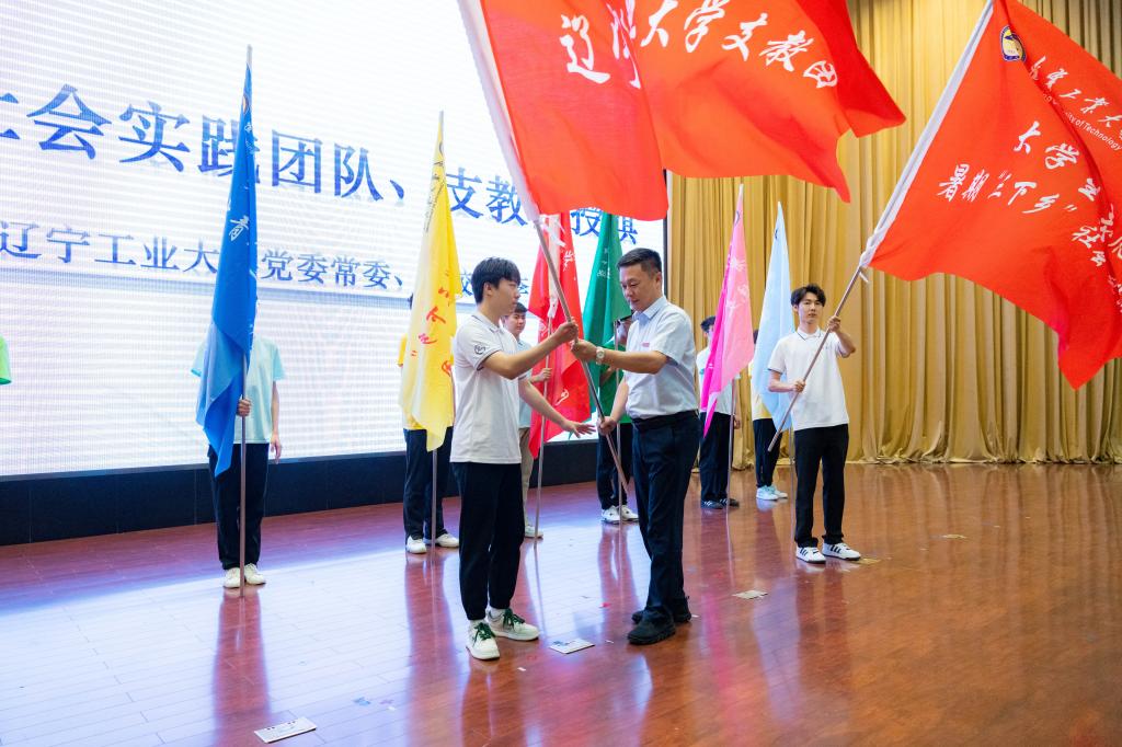 仪式上,李永明为米乐mile官方网站社会实践团队、支教团授旗。