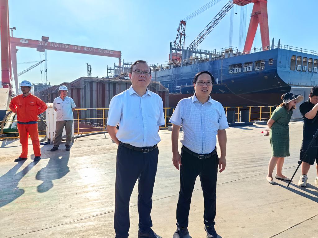 在访企深度对接环节,张启俭一行实地考察了大全集团和江苏新韩通船舶重工有限公司,深入了解企业的发展历程、企业文化和主要产品,以及企业在人才培养方面的意见和建议,达成了良好的合作意向。