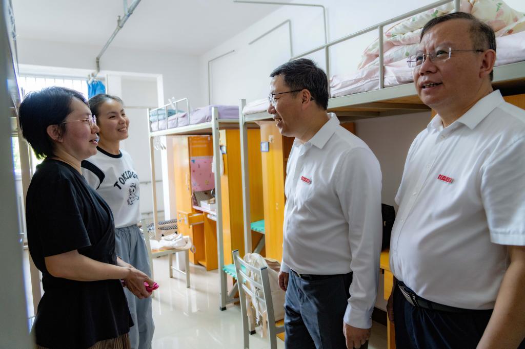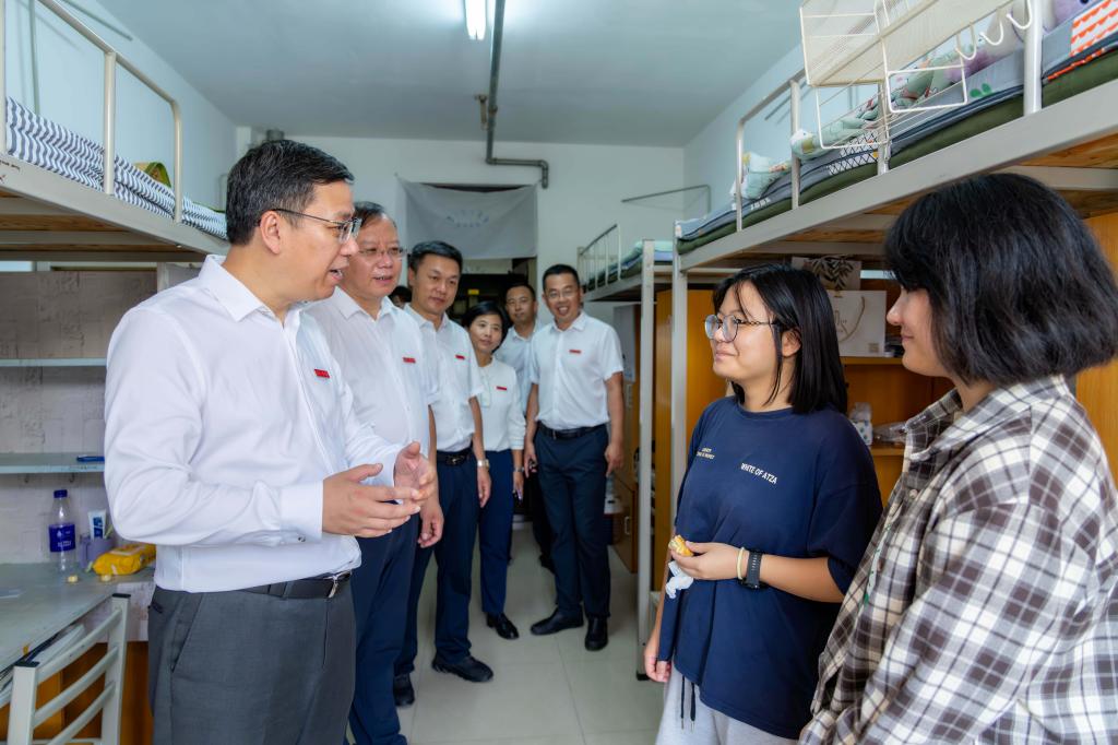 校领导实地走访了新生宿舍、食堂等地,在新生宿舍,钱英伟、张启俭亲切询问了新生们的家乡和初入辽工大的感受。新生们纷纷表示,一进学校就感受到来自老师和学长学姐的关爱,很感谢能有宝贵的机会圆梦辽工大,并在这里开启新的奋斗旅程。钱英伟向新生们介绍了学校发展等有关情况,勉励新生们快速融入集体,学好专业知识,做好大学期间的人生规划。他表示学校将不遗余力提供高质量学习环境、生活环境,助力学生成长成才。