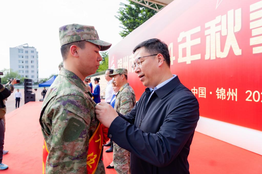 锦州市委常委、副市长刘希明,锦州军分区大校司令员张庆国、大校政治委员刘魁毅、大校副司令员张威,锦州市退役军人事务局局长谈云鹏,军分区各部门负责同志、各区县人武部同志、270名新兵,校党委书记钱英伟、副校长李永明,学校相关部门负责人、2024级新生参加活动。活动由刘魁毅主持。