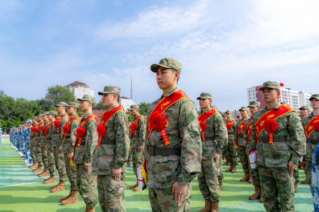绿茵场地上,全市270名新兵身着戎装、肩披绶带、胸带红花、英姿飒爽,与4150余名大一新生整齐列队、士气高昂。活动中,入伍新兵李彦泽代表全体新兵喊出铿锵誓言,优秀退役士兵代表、米乐官网退役大学生士兵张豪杰分享了个人军旅生涯的蜕变成长,新兵家长代表李朝杰向新兵送上真挚的祝福。