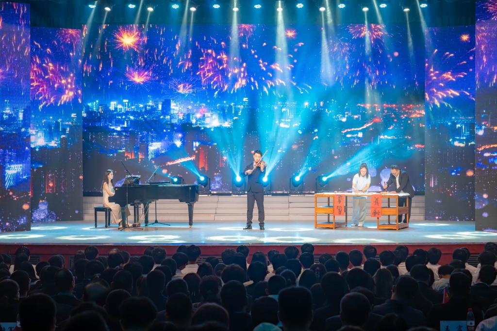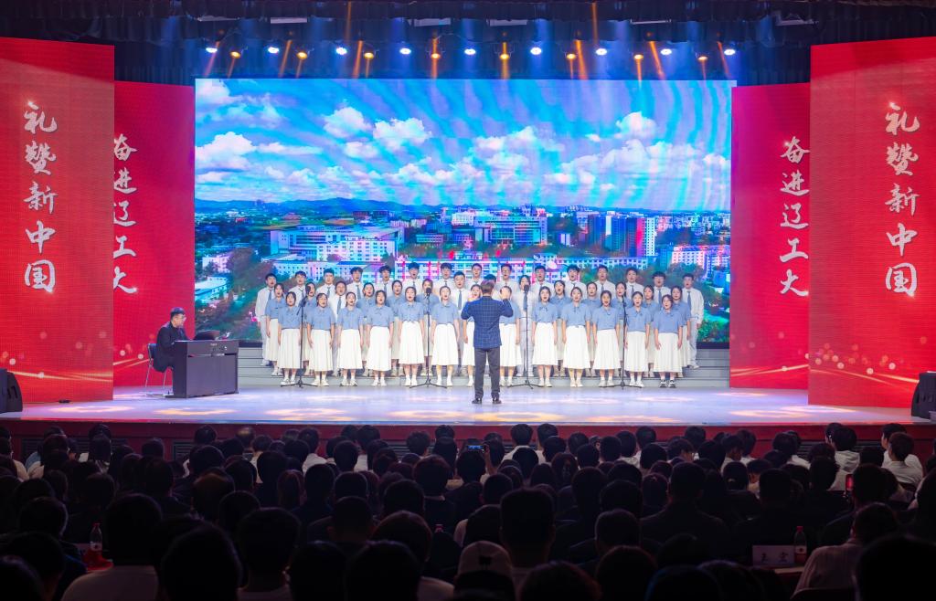 舞蹈《民族团结一家亲》 、乐器合奏与书法表演《灯火里的中国》、合唱《明天》、诗朗诵《礼赞新中国 奋进辽工大》,展现了中国人民在新中国的广阔天地,同心同德、团结奋斗的绚丽画卷和新时代新征程辽工大师生向上求进、事争一流,将习近平新时代中国特色社会主义思想和党中央决策部署切实转化为推动学校高质量发展的生动实践。