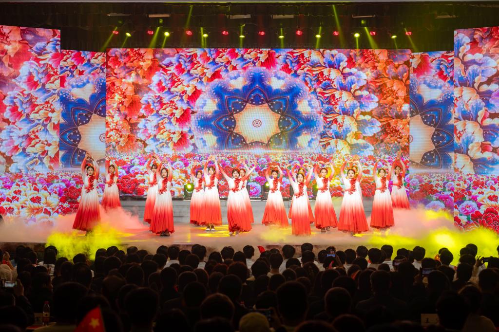 歌曲《天地龙鳞》、歌伴舞《强国有我》、大合唱《祝福祖国》《没有共产党就没有新中国》《歌唱祖国》,呈现了中国人民以中国式现代化全面推进强国建设、民族复兴伟业,踔厉奋发、昂扬奋斗的壮美图景。