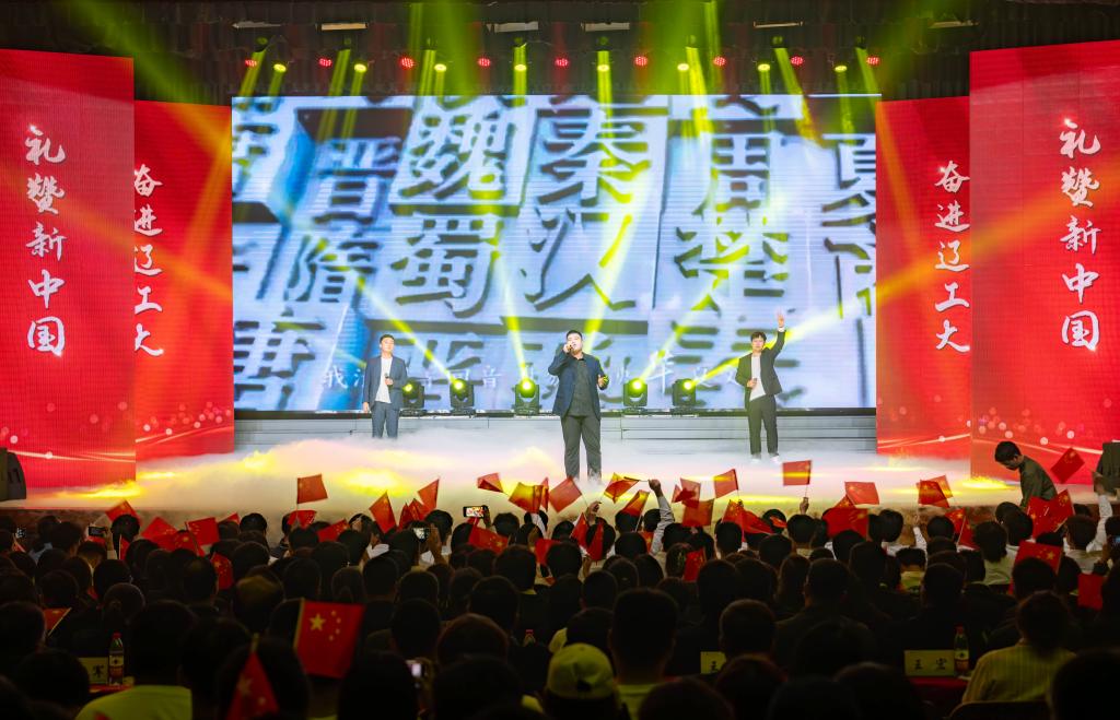 整场晚会历时1个半小时,会堂内热情洋溢、气氛欢腾,千名师生起身挥舞国旗高唱《国歌》《歌唱祖国》,呈现出一片红色的海洋,感染着现场的每一名师生,衷心祝福伟大祖国繁荣昌盛、国泰民安!祝愿米乐mile官方网站明天更加灿烂辉煌!