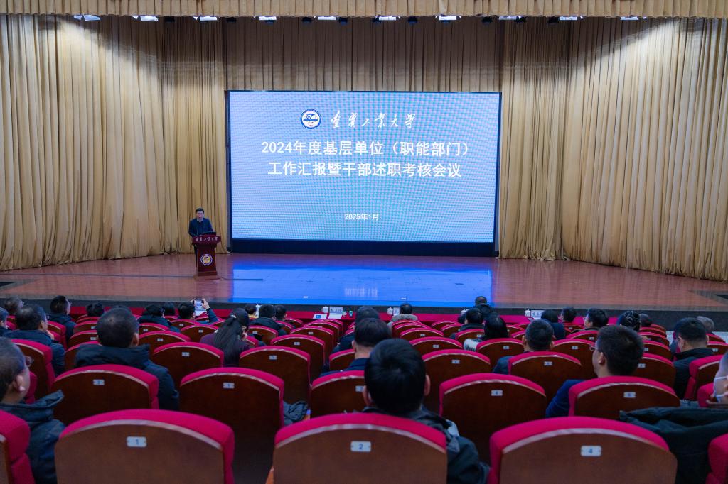 为深入贯彻落实党的二十届三中全会精神和全国、全省教育大会精神,进一步激励全校干部担当作为,推动各单位各部门对标一流、找准差距,聚焦目标、精准发力,持续推动学校各项事业高质量发展,1月2日,学校在图书馆报告厅召开2024年度基层单位(职能部门)工作汇报暨干部述职考核会议。学校领导班子成员和考核评价团成员参加了会议。会议由校党委副书记、校长张启俭主持。