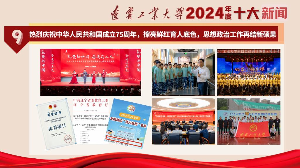 2024年是中华人民共和国成立75周年,是全面振兴新突破三年行动的攻坚之年,是学校实现“十四五”发展规划目标的关键之年。这一年,在学校党委的坚强领导下,全校师生踔厉奋发、勇毅前行,奋力书写加快建设教育强国、人才强国、科技强国的辽工大答卷!