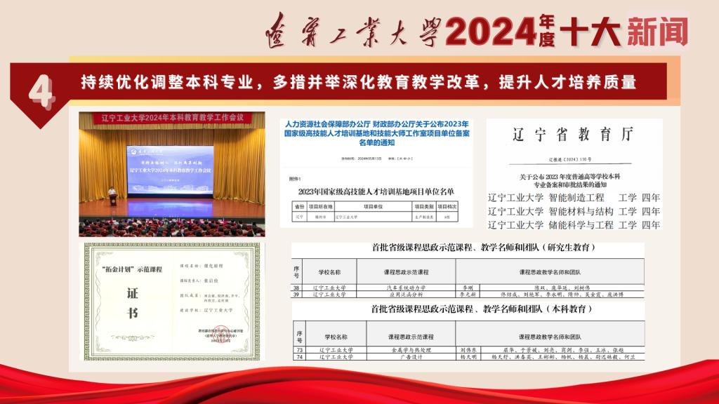 延伸阅读:2024年,学校优化调整专业6个,理工类专业占比近76%,修订2024级本科专业人才培养方案,完善基层教学组织体系建设。持续加强课程内涵建设,6门课程获批教育部“拓金计划”示范课程,4门课程获批辽宁省普通高等教育课程思政示范课程,获批“辽宁省高校思想政治理论课名师工作室”1个,首次获批省级课程思政教学研究示范中心。深化产教融合,获批国家级高技能人才培训基地项目单位,获批教育部产学合作协同育人项目15项、辽宁省普通高校现代产业学院5个。深化国际交流合作,新增2所国际合作学校和2个国际合作交流项目,来华留学生规模和质量大幅提升。
