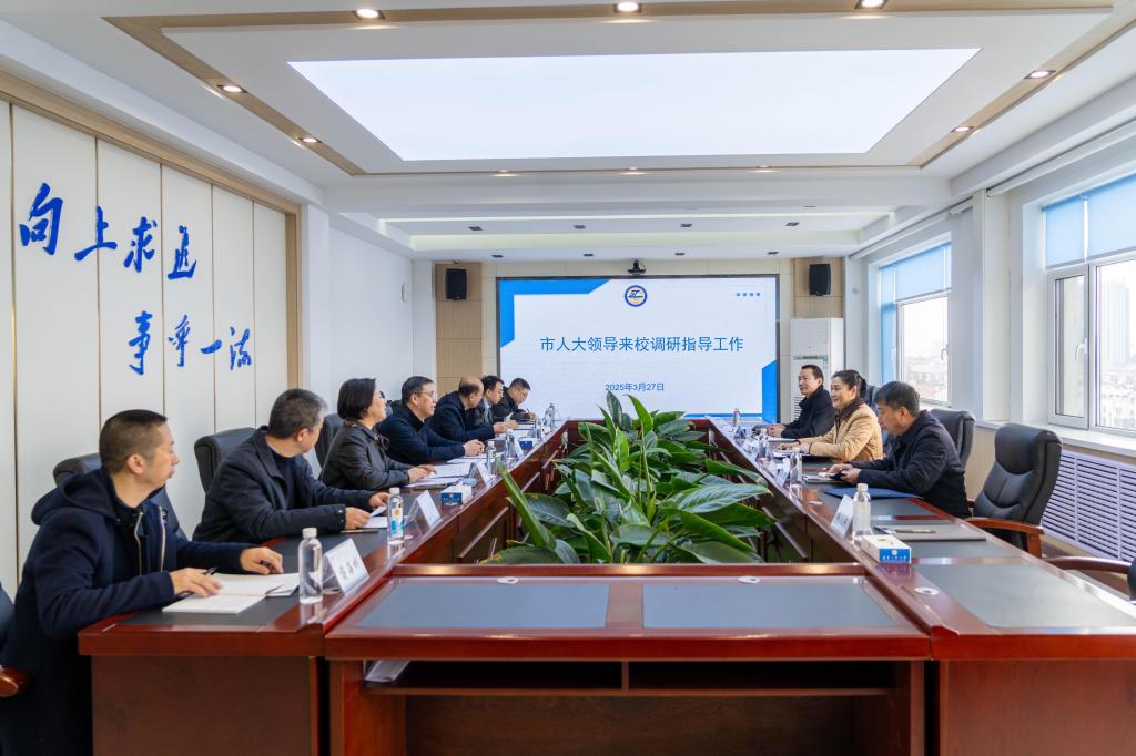 钱英伟代表学校对杨淑梅一行的到来表示欢迎,对市人大长期以来对学校建设发展给予的关心与支持表示感谢。他指出,作为锦州市地方立法研究基地成员单位,学校始终坚持以习近平新时代中国特色社会主义思想为引领,深入学习、全面贯彻习近平法治思想,深刻领悟习近平法治思想的精髓要义和实践要求,并将其融入教育教学全过程,持续完善依法治校制度体系,深入推动法治校园建设,扎实推进学校治理体系和治理能力现代化建设,努力形成依法治校办学新格局,以高水平法治助力学校高质量发展。他还介绍了学校的基本情况、“135111”发展战略以及学校积极参与辽宁全面振兴、锦州区域中心城市建设、服务地方经济社会发展取得的进展,重点介绍了学校充分发挥自身优势,开展博士入企行动,助力企业解决“卡脖子”问题,为深化校地、校企合作,推动产学研一体化贡献了辽工大智慧和力量。他表示,作为建立在辽沈战役配水池战斗遗址上的红色大学,学校将持续讲好“三个一”的故事,大力弘扬“三种精神”,进一步深化与市人大的沟通交流合作,切实将学校的科技、人才和智力优势转化为推动地方经济高质量发展的强劲动力。
