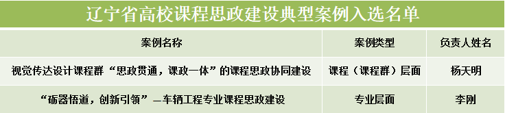 10月22日,辽宁省教育厅公布了2025年辽宁省高校课程思政建设项目遴选结果,确定了辽宁省课程思政建设先行高校10所、课程思政建设先行高校(培育)20所、课程思政建设试点院系47个、课程思政建设典型案例100项。米乐官网获批“辽宁省课程思政建设先行高校”,成为全省10所首批获此殊荣的高校之一。文化传媒与艺术设计学院获批“辽宁省高校课程思政建设试点院系”,《视觉传达设计课程群“思政贯通,课政一体”的课程思政协同建设》与《“砺器悟道,创新引领”——车辆工程专业课程思政建设》2项案例入选“辽宁省高校课程思政建设典型案例”。