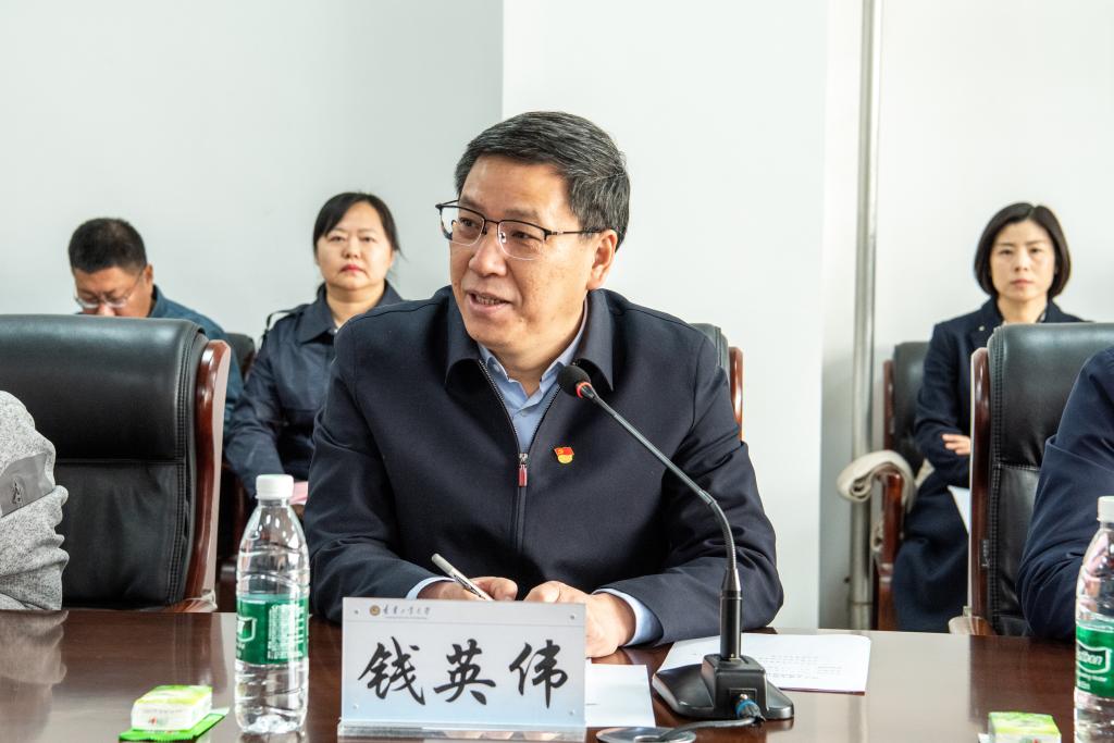 钱英伟对王宏利一行的到来表示热烈欢迎,介绍了学校的办学历史、发展现状及学科专业、教学科研、师资队伍、人才培养、文化建设等方面取得的标志性成果。他指出,作为同处锦州的兄弟院校,党建结对共建为双方搭建了互学互鉴的重要平台,也为提升党建工作水平、服务区域经济社会高质量发展注入新动能。他表示,在省委教育工委的关怀指导下,经过前期座谈交流和深入调研,双方已具备深厚合作基础。在“十四五”圆满收官、“十五五”开篇布局的关键节点,他希望双方在党建引领下深化全方位合作,紧扣“组织联建、队伍帮带、育人协同、资源共享、发展双赢”五大重点任务,在学科专业互补、人才培养协同、科研创新联合攻关、治理能力共同提升等方面持续发力,将共建优势转化为发展优势,为辽宁全面振兴、教育强国建设贡献坚实力量。同时,要以清单化管理、项目化推进保障共建实效,杜绝形式主义,让各项合作落地见效。