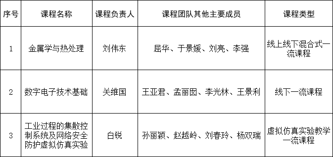 近日,教育部发布《关于公布第三批国家级一流本科课程认定结果的通知》,米乐官网3门课程获批第三批国家级一流本科课程,分别是线上线下混合式一流课程《金属学与热处理》、线下一流课程《数字电子技术基础》、虚拟仿真实验教学一流课程《工业过程的集散控制系统及网络安全防护虚拟仿真实验》。截至目前,米乐官网共获批6门国家级一流本科课程。