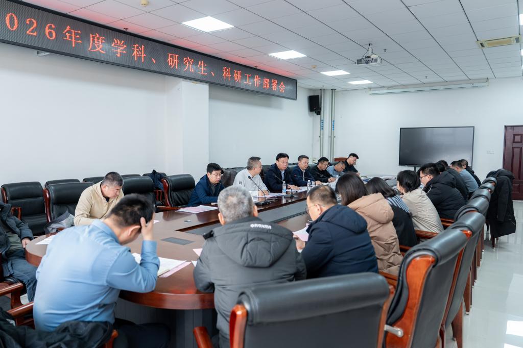 3月5日,学校在图书馆第一会议室召开2026年度学科、研究生、科研工作部署会。校党委副书记、校长张启俭出席会议并讲话。党委常委、副校长李永明主持会议。相关职能部门负责人,各二级学院院长和分管科研工作副院长参加会议。