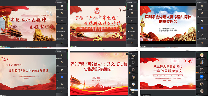 为深入学习宣传贯彻党的二十大精神,不断用习近平新时代中国特色社会主义思想武装青年、教育青年,米乐官网大学生红色理论宣讲团分别于12月11日、12月12日和12月13日面向马克思主义学院全体研究生、校级学生会与学生社团成员、学院学生会成员与班级团支部委员等共计500余人在线上开展“党的二十大精神”主题宣讲活动。