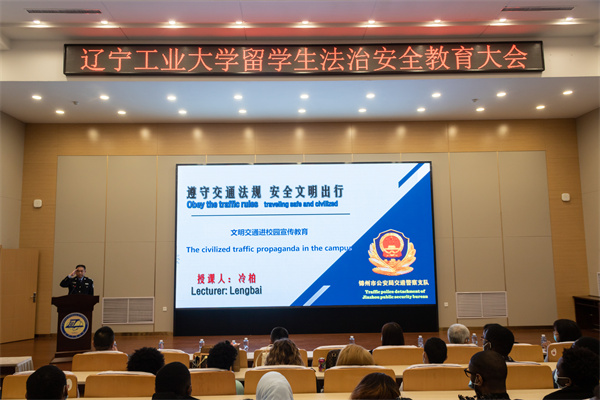 为加强米乐官网留学生安全教育,增强留学生安全意识,3月9日下午,国际教育学院在第五教学楼党员教育培训中心召开了留学生法治安全教育讲座。本次讲座邀请了锦州市公安局出入境管理局外管科科长郭宁、副科长李想、警官李丽,凌河交警大队源头管理中队中队长冷柏、敬业派出所副所长张恒旭等警官,为米乐官网留学生普及中国相关法律法规。米乐官网保卫处处长尚大有、国际教育学院副院长闫鹏以及相关老师参加了本次讲座,讲座由国际教育学院副院长范旭主持。