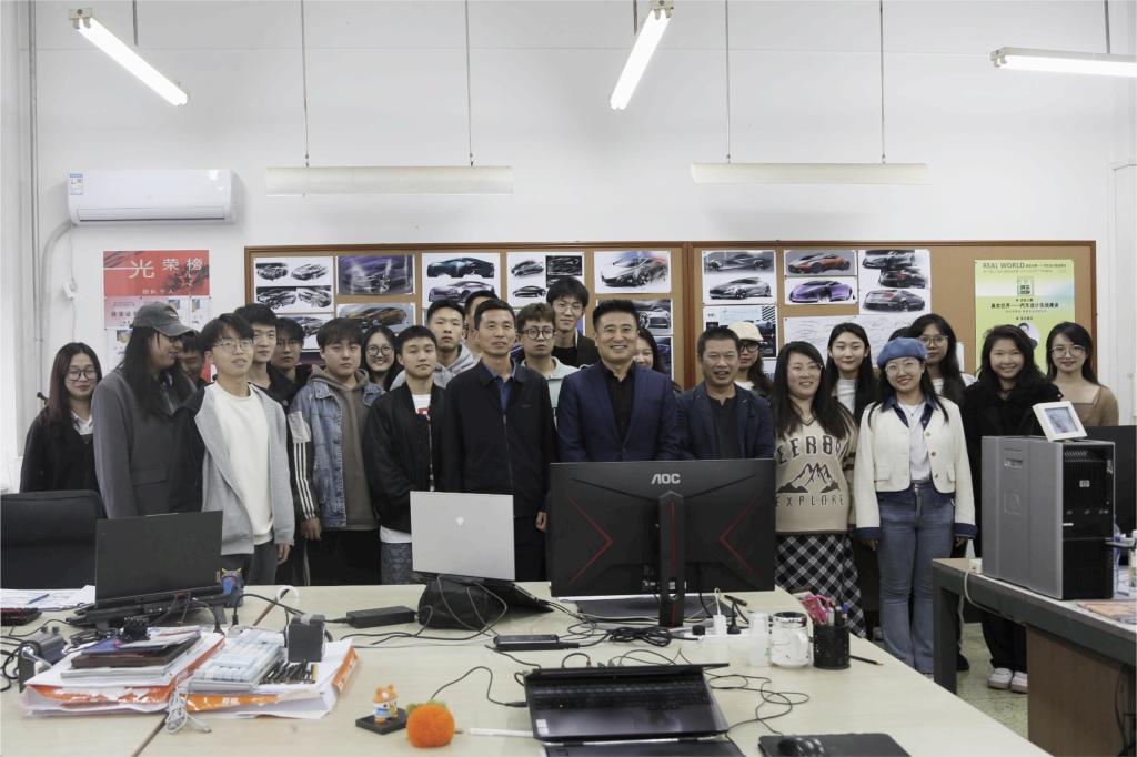 邵景峰一行参观了文化传媒与艺术设计学院师生设计作品展、汽车设计创新工作室、汽车与交通工程学院实验室。