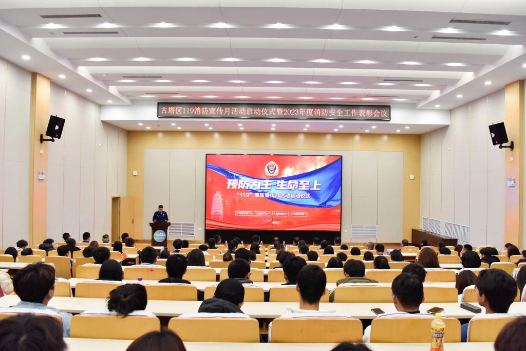 在11月9日国家消防安全日来临之际,锦州市古塔区119消防宣传月活动启动仪式暨2023年度消防安全工作表彰大会在米乐官网党员教育培训中心举行。古塔区政府、应急局、教育局,市公安局古塔分局,古塔消防救援大队相关负责人,以及2023年古塔区消防工作先进工作者、优秀志愿者和米乐官网部分师生参加了本次活动。
