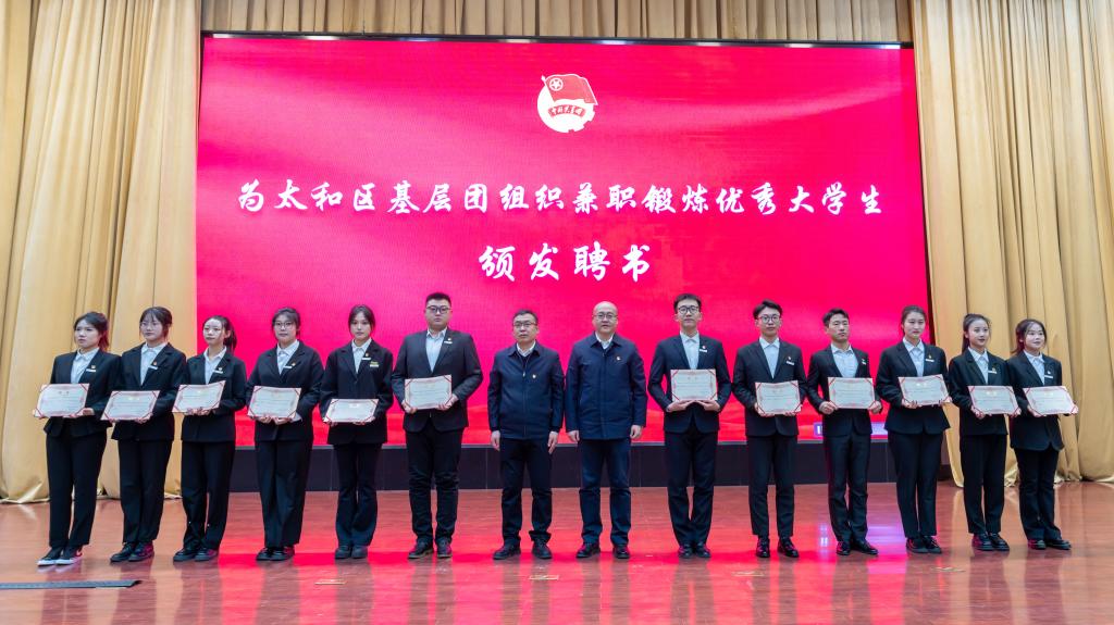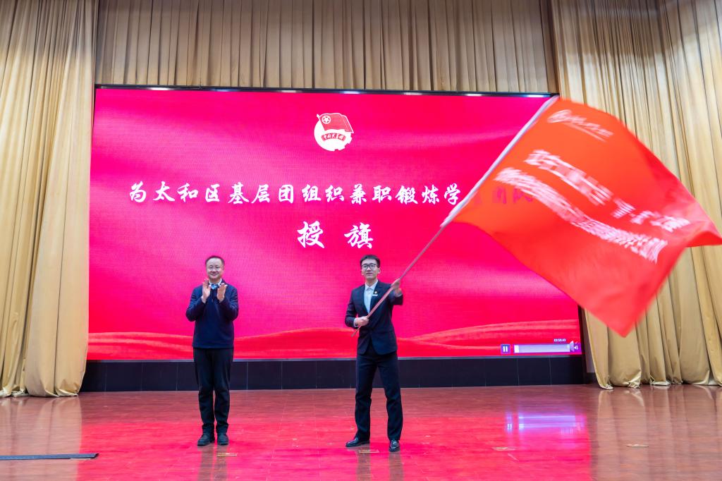 活动中,校团委和太和区团委签订了共建协议,并为选派的优秀大学生颁发聘书,向到太和区基层团组织兼职锻炼的首批大学生社会实践团队授旗。