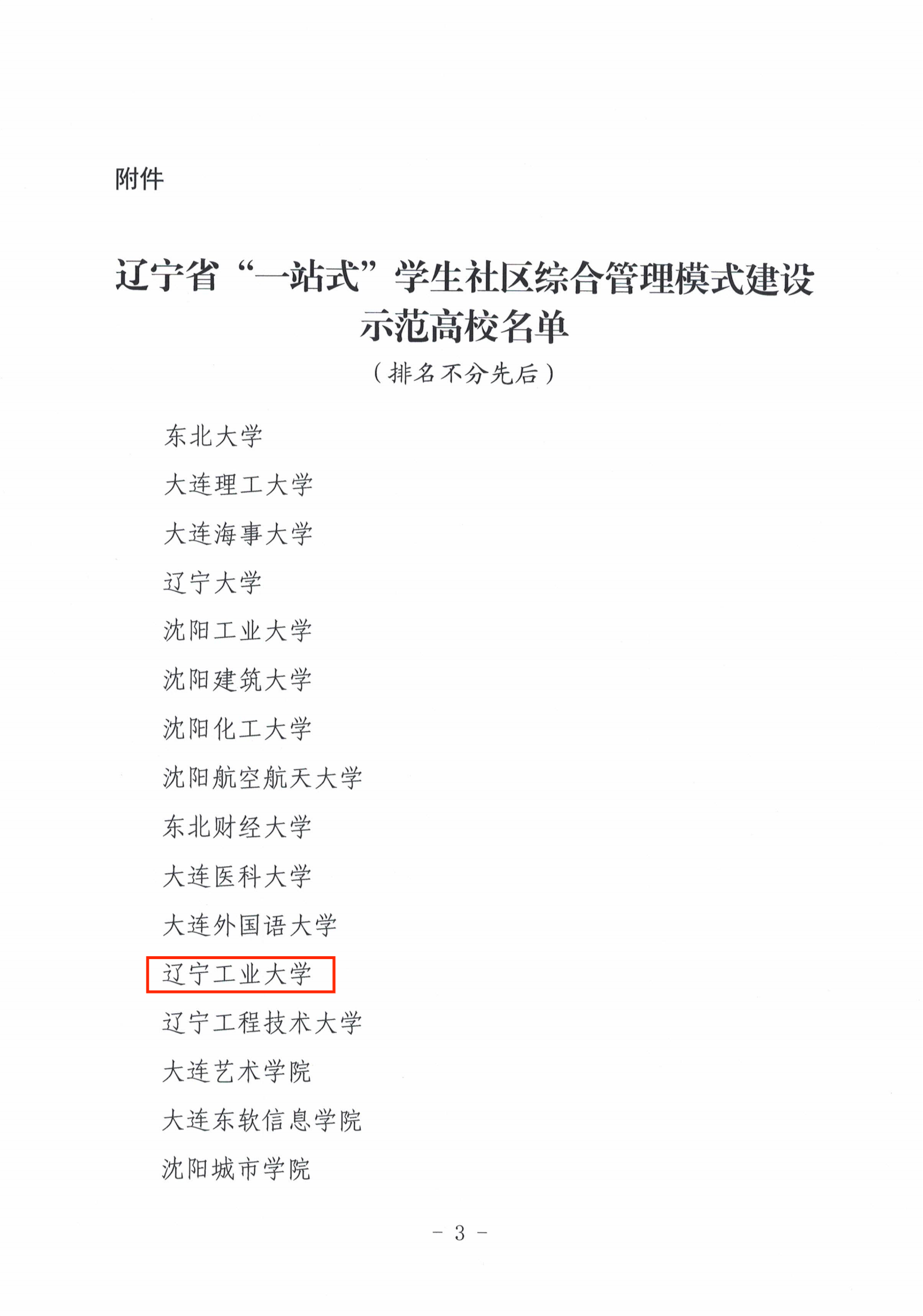 近日,辽宁省教育厅印发了《关于公布第一批辽宁省“一站式”学生社区综合管理模式建设示范高校名单的通知》,米乐官网成功入选。