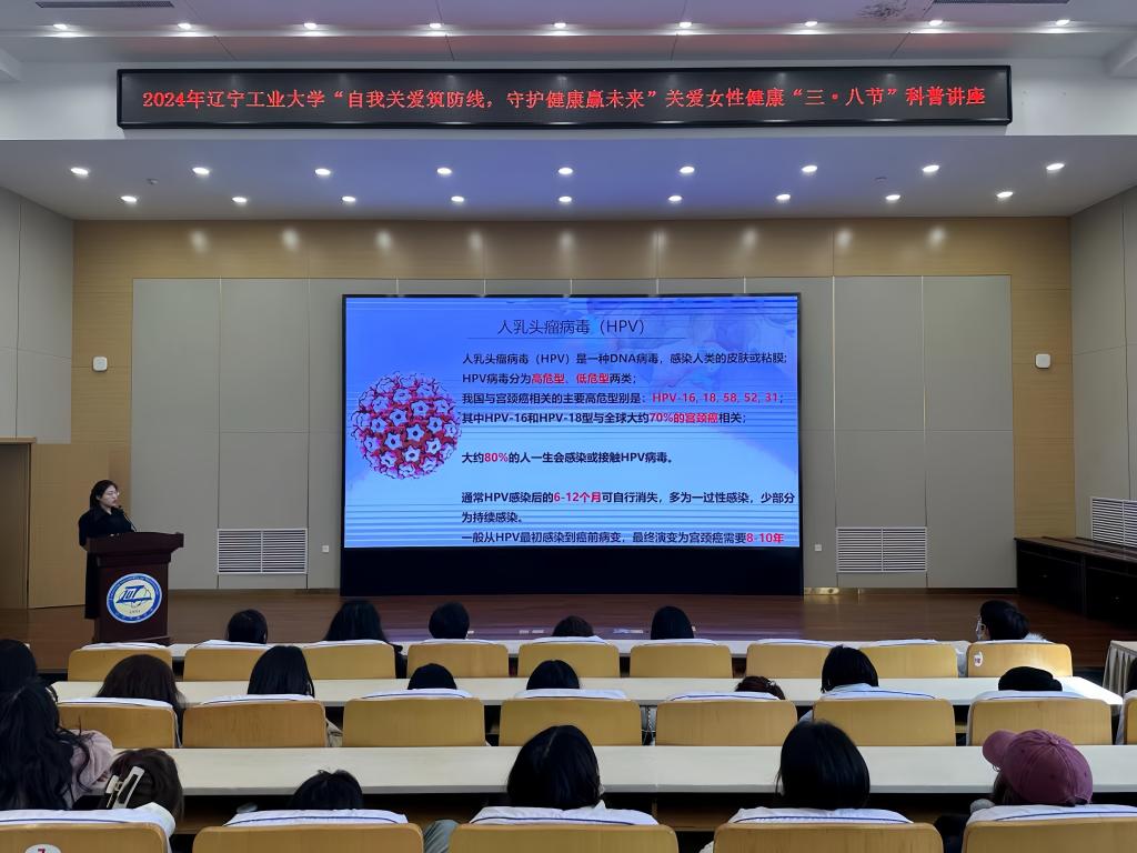 近日,米乐官网举办“自我关爱筑防线 守护健康赢未来”关爱女性健康科普知识讲座。讲座由校工会、校医院和校团委联合举办,共青团汽车与交通工程学院委员会承办,邀请了锦州市妇婴医院产科主治医师阚辰晓主讲。相关部门负责人及学校女教职工、学生等200余人聆听了讲座。
