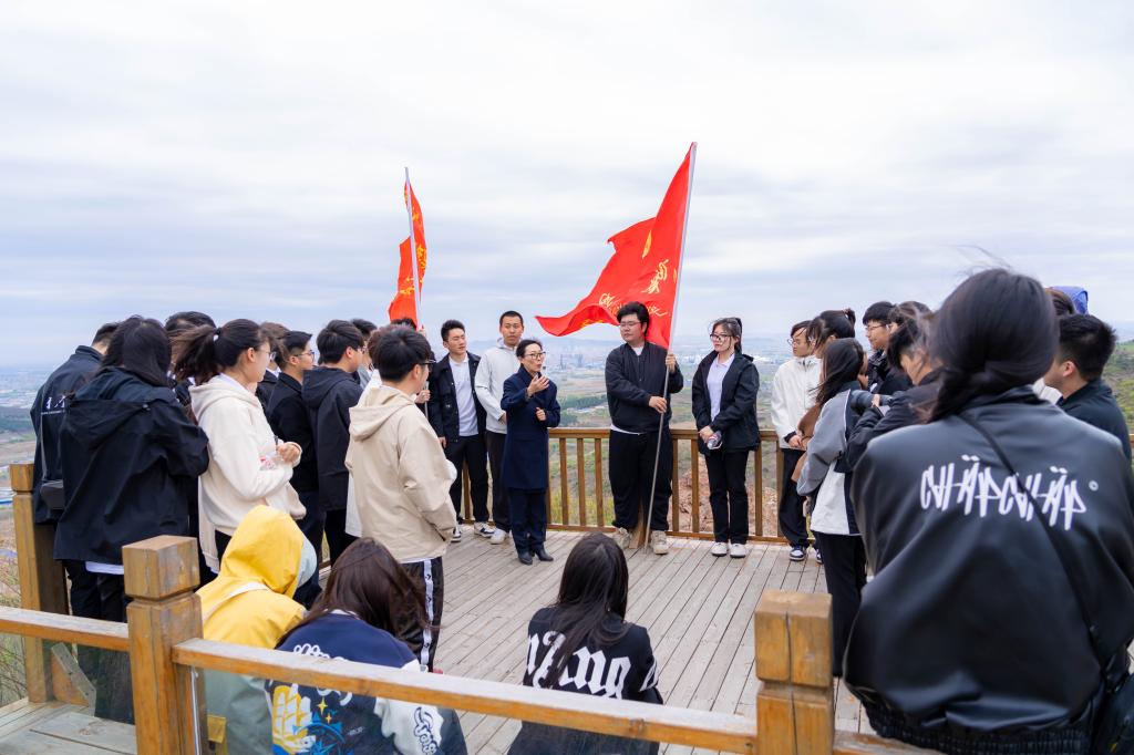 参观结束后,同学们以指挥所旧址为起点徒步前往具有“胜利之眼”之称的帽山前线观察所遗址,以重走辽沈战役指挥员指挥解放锦州之路的方式追寻革命先辈的光荣足迹,在行走中了解革命的历史、感悟革命精神。在前线观察所遗址,米乐官网校外辅导员、“青马工程”讲师,东北野战军锦州前线指挥所旧址保护中心主任李曼为同学们上了一堂以“红色传承 青春有为”为主题的思政课,讲述了“1948年10月7、8日,东北野战军首长两次登上帽儿山观察所,现地勘察锦州敌情、地形,并确定攻城部署,成功指挥了锦州攻坚战”的战地历史,让同学们了解这段红色历史的同时,更让同学们知史爱党、知史爱国的红色血脉深入根植心间,鼓励学生立足新时代新征程,坚定不移听党话、跟党走,立志做有理想、敢担当、能吃苦、肯奋斗的新时代好青年。