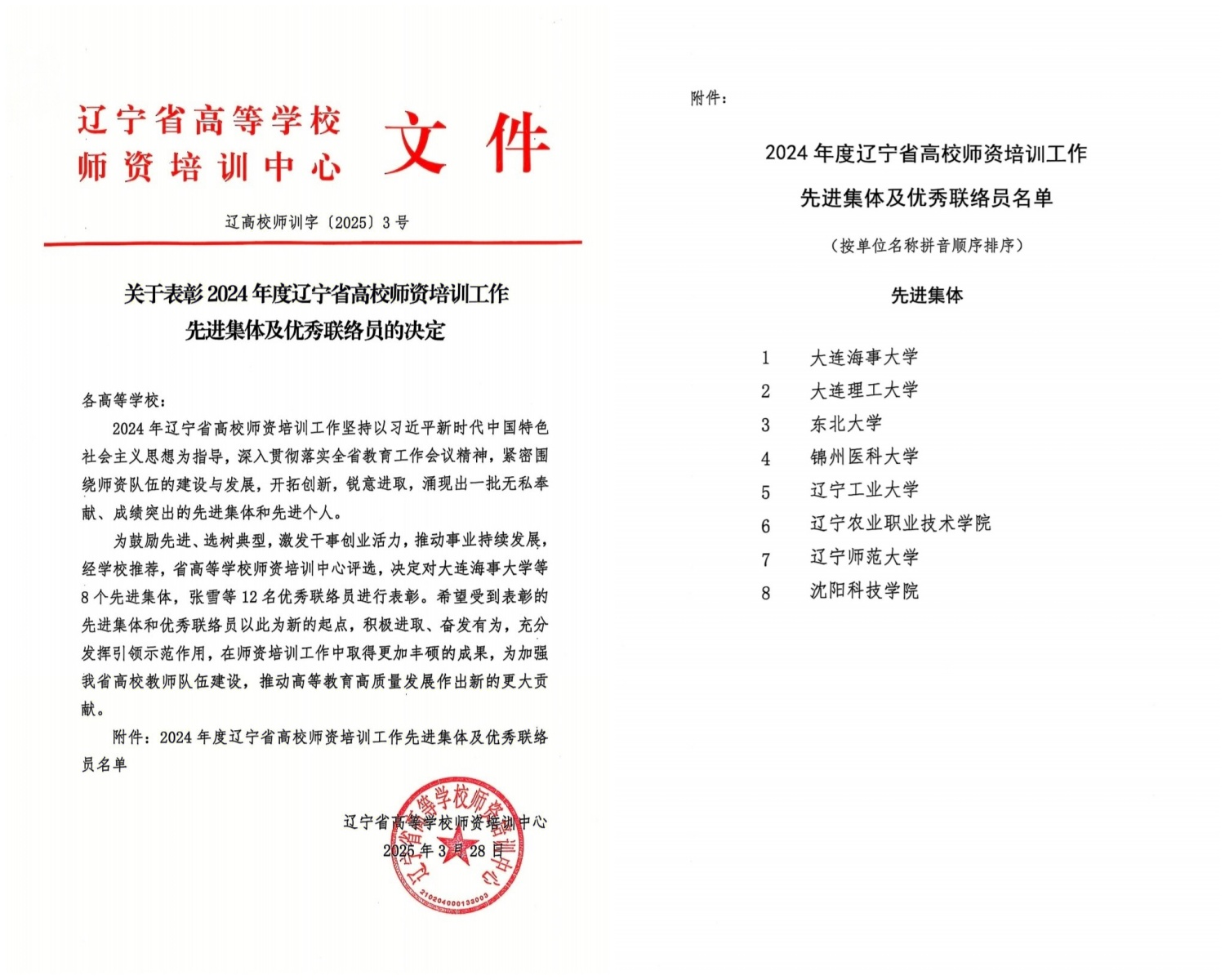 日前,辽宁省高等学校师资培训中心对全省2024年师资培训工作先进集体进行表彰。米乐官网荣获“2024年度辽宁省高校师资培训工作先进集体”称号,成为全省8所获此荣誉的高校之一。