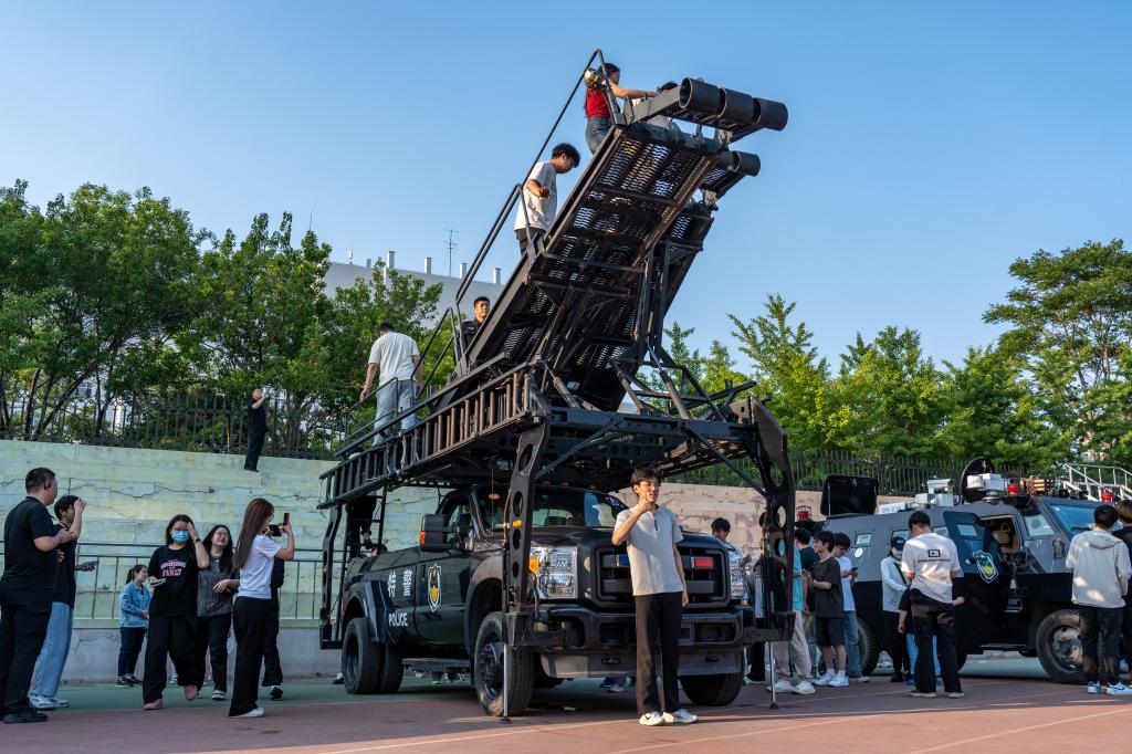 活动现场,设置了枪械武器、防暴装备等展示和互动体验区,公安民警详细介绍了相关器械的功能并演示了操作方法,师生们还登上警用装甲车、坐上交警铁骑,近距离接触先进警用装备,切实感受警营文化。活动中,结合典型案例向师生普及反诈知识,穿插了禁毒、消防、交通安全等知识问答环节,米乐官网音乐协会4支摇滚乐队与公安蔚蓝乐队联袂进行了表演,通过寓教于乐的方式让师生们在轻松愉快的氛围中深入了解安全知识。活动结束后,保卫处组织开展了疏散演练。(王晗 文/李刚 摄影)