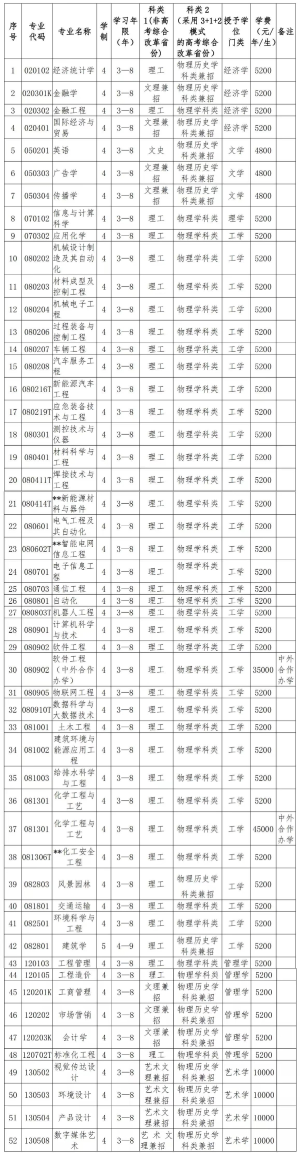 国际经济与贸易、软件工程(中外合作办学项目)、化学工程与工艺(中外合作办学项目)根据行业及专业教学要求,入校后外语课程只安排英语教学,非英语语种考生不宜就读。其他专业语种不限。