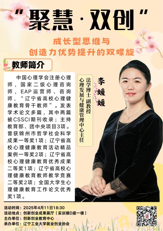 报告题目:“聚慧·双创”——成长型思维与创造力优势提升的双螺旋